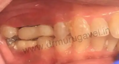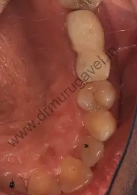 - Showing the lower opposing teeth slightly moves upward ( supraeruption ) which is present opposite to the missing upper teeth in the left side.