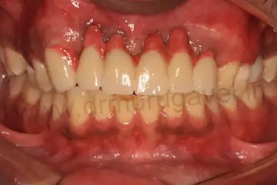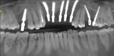 - It should be noted that his provisional bridge had hygienic gaps in the gum region , this denotes perfect gum healing and the implants condition was confirmed after taking radiographs ( OPG & CBCT ).