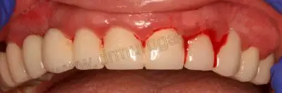 This case report is about An 55 years old female from Russia. She complains of pain and bleeding gums in tooth supported bridge.